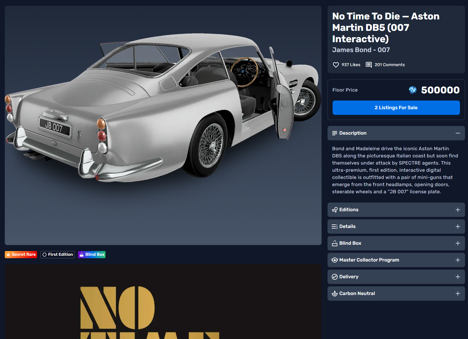 Still think digital collectibles can’t hold value? Go check VeVe’s Aston Martin DB5 from No Time To Die. There are only seven of them. They’re fully interactive. Driveable in augmented reality. Doors open. Wheels steer. The headlights literally pop up with mini-guns.